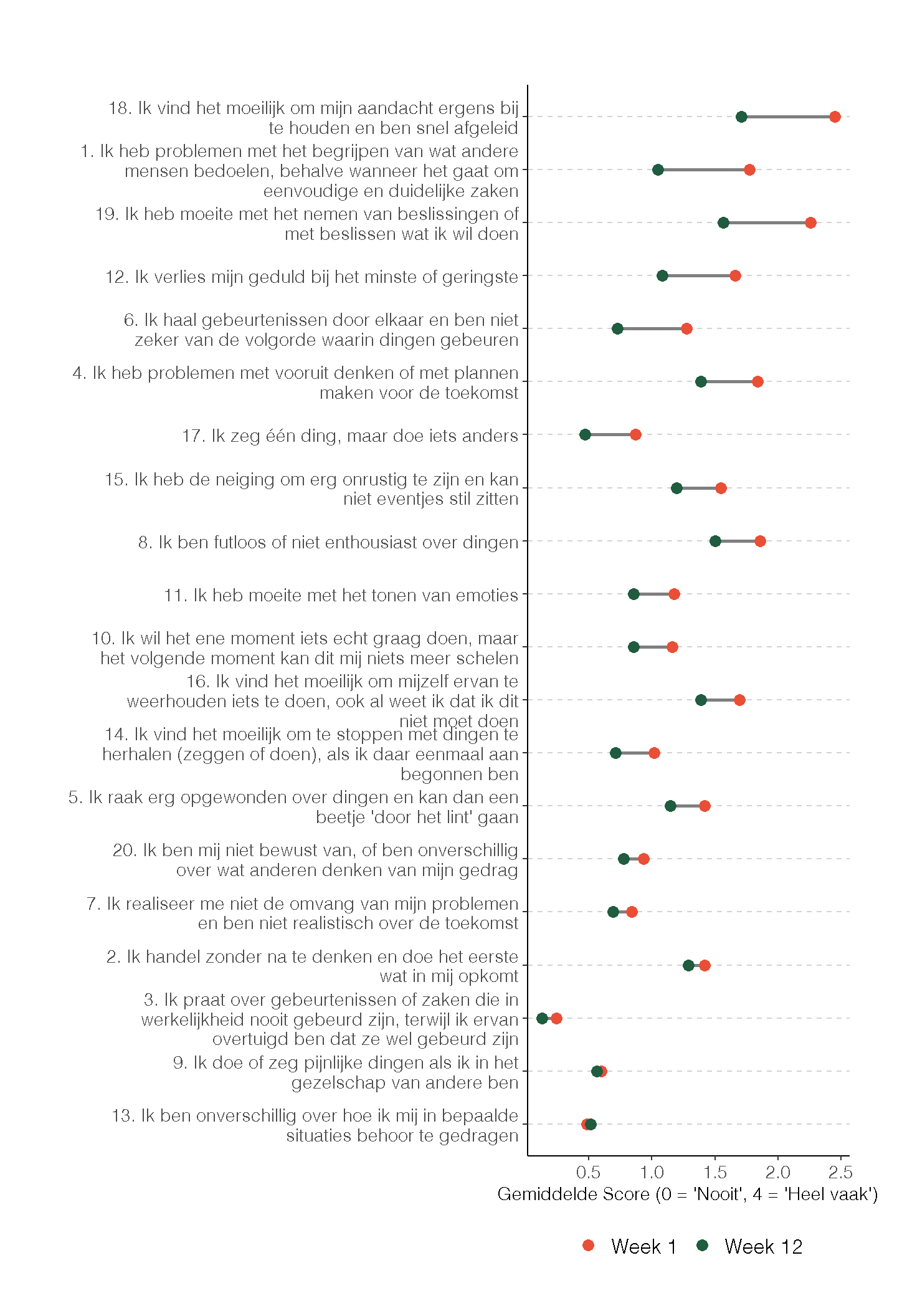 De deelnemer heeft deze vragenlijst ingevuld in week 1 en in week 12.
