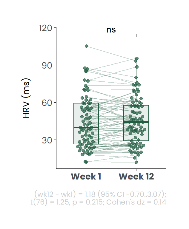 De deelnemer heeft minimaal 2/3 van de geplande HRV-metingen in zowel week 1 en in week 12.