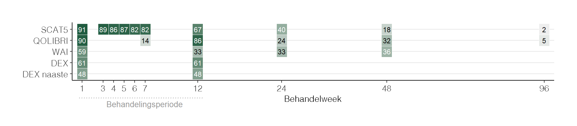 De deelnemer heeft deze vragenlijst ingevuld in week 1, én minstens één geldige meting na de behandelweek in week 24 of 48.