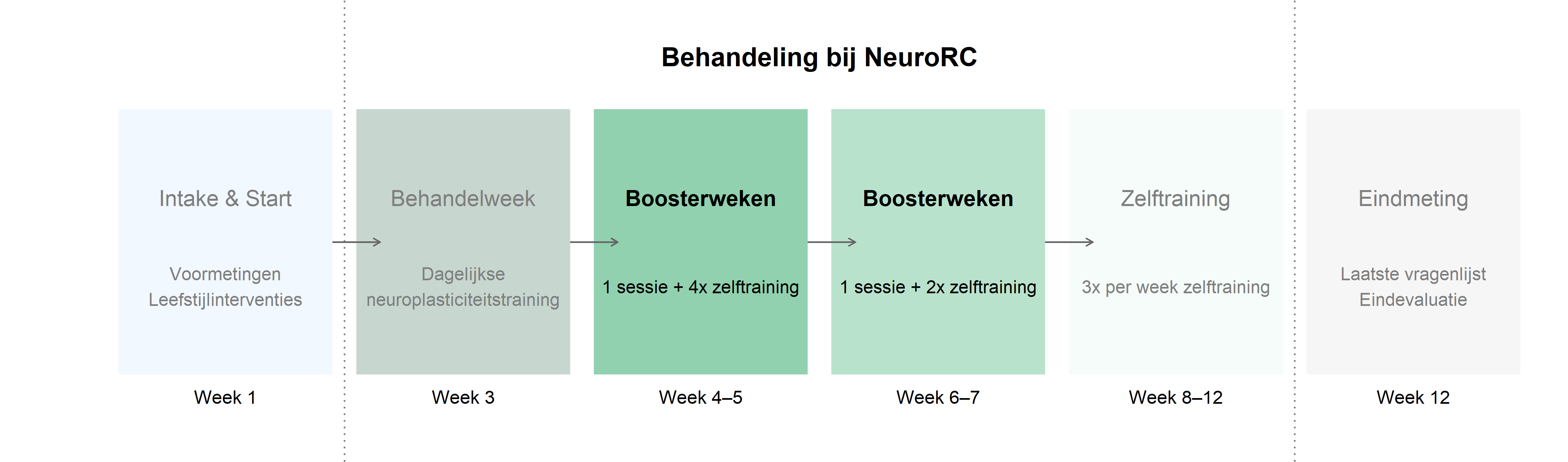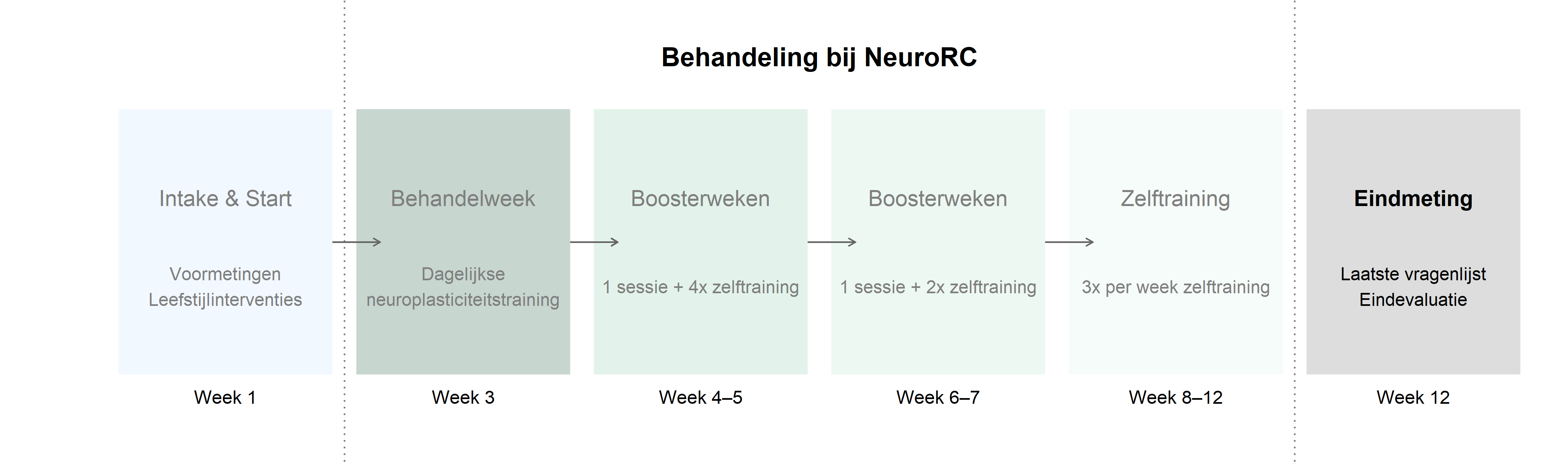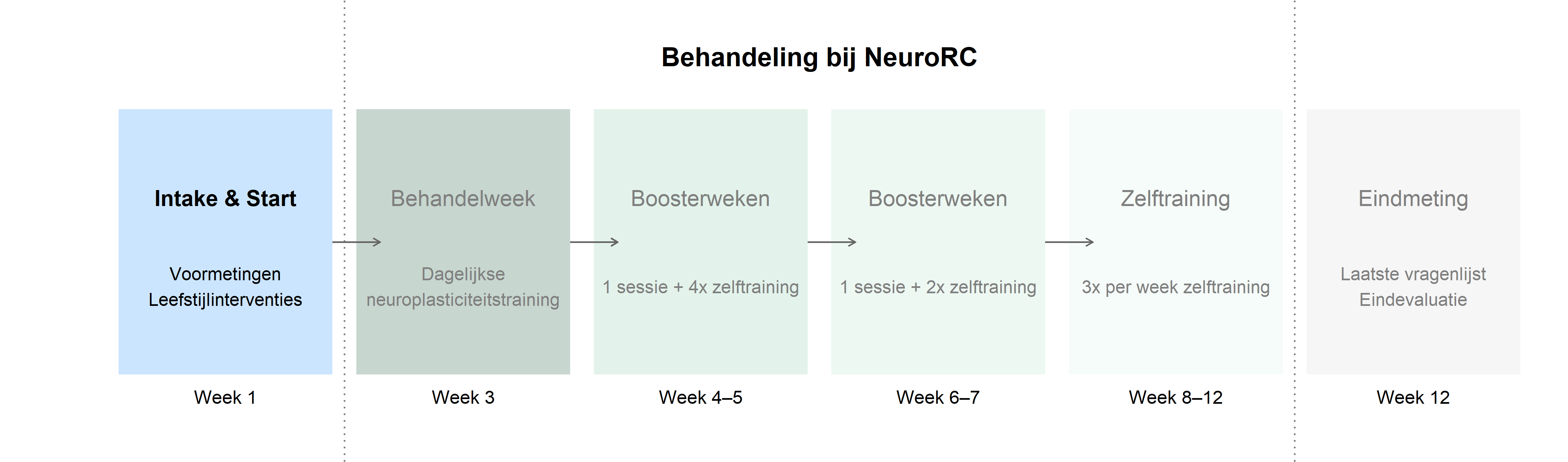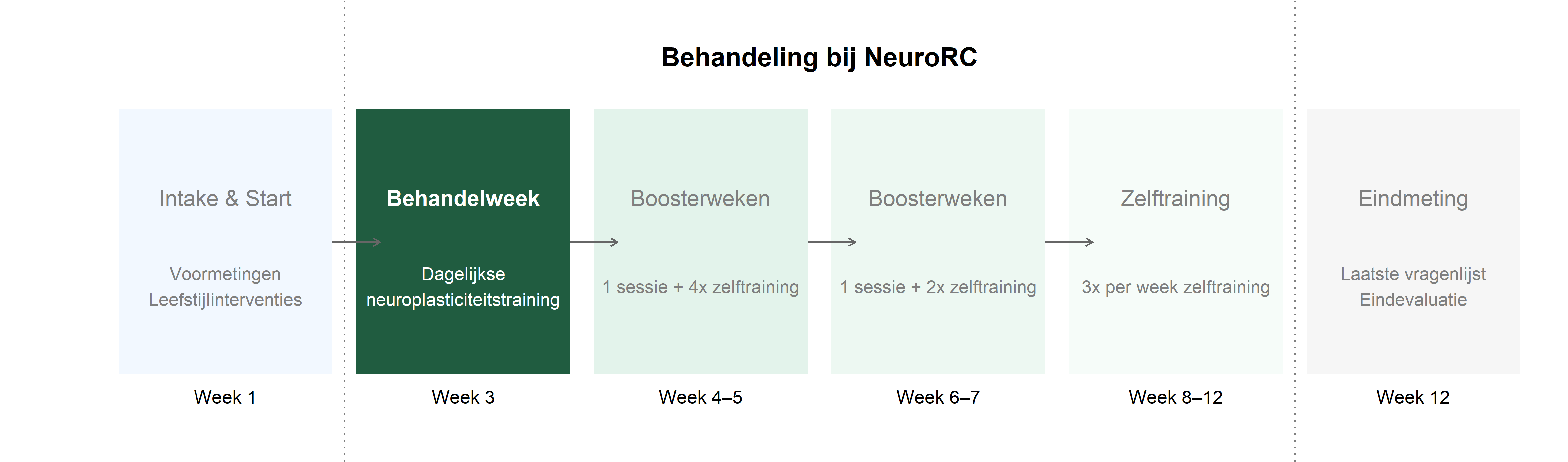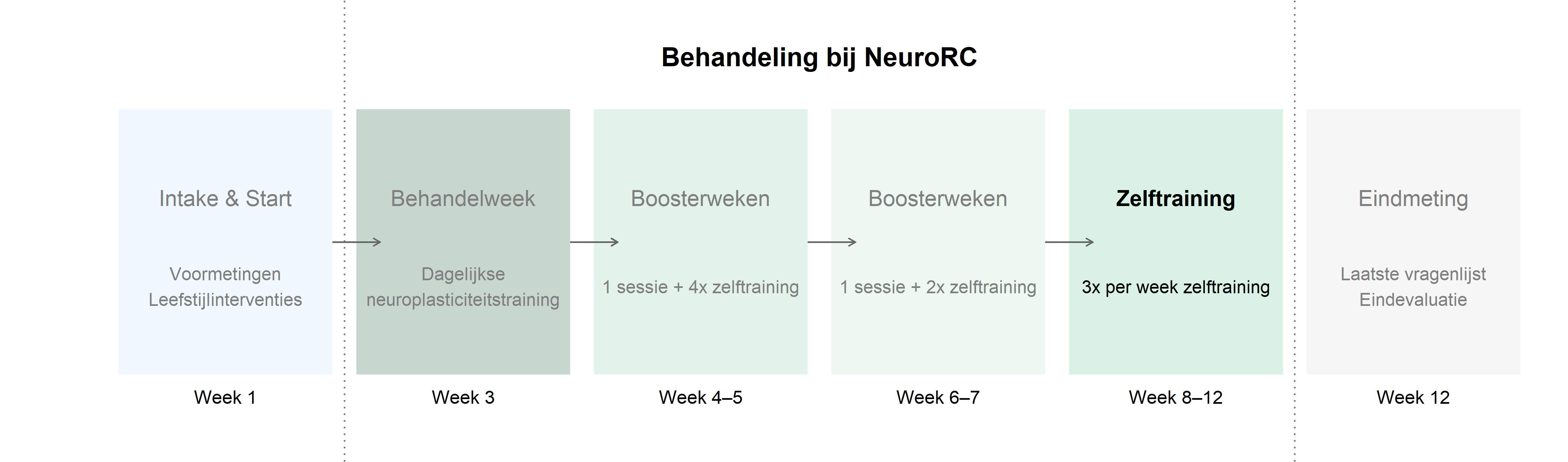 De Neuroplasticiteitstraining NAH bij NeuroRC bestaat uit een trainingsweek opgebouwd uit een vaste cyclus van: